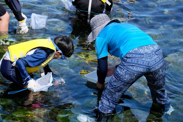 起伏の多い浅い海では、魚だけでなく、カイメンの仲間や小さな貝類、ヤドカリやエビなどの甲殻類も生息しています。活動を通じて、磯場にすむ生き物の豊富さに触れることができました。